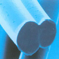 LYCRA?T400?纖維的高分辨率照片表明,每根單絲肉的兩種聚合物產生一種種狗骨狀的橫截面。 |